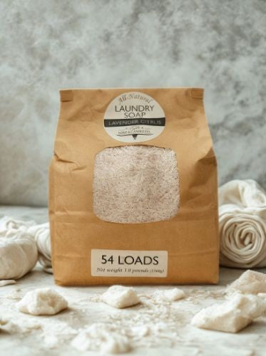 Clean your clothes the natural way with our handcrafted Natural Laundry Soap - made with simple, effective ingredients that are tough on dirt but gentle on your skin and the planet. Free from synthetic fragrances, dyes, and harsh chemicals, this powder soap is powered by all-natural coconut oil soap, washing soda, and citric acid. It leaves your laundry fresh, soft, and truly clean - no residue, no toxins. Safe for sensitive skin, septic systems, and all washing machines, including HE.